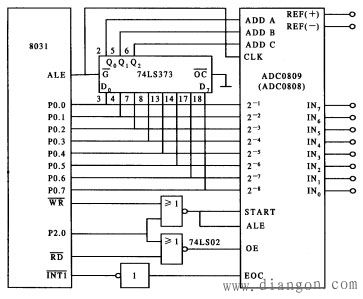 ADC0809 與 8031 的中斷方式 接口電路