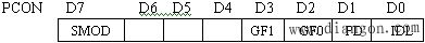 PCON主要是為CHMOS型單片機的電源控制而設置的專用寄存器,地址為87H。PCON的最高位SMOD是串行口波特率倍增位。當SMOD=1時,波特率加倍,復位時,SMOD=0。PCON的格式如下: