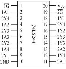 單片機總線端口的驅動能力是有限的,一般只能驅動幾個LSTTL負載或十幾個MOS電路負載,若需要掛接多個負載,因此常常需要進行總線驅動。單向驅動器74LS244是一種常用的總線驅動器。其外形如圖7,引腳如圖8所示。