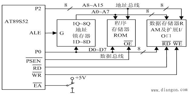 圖4 擴展后的單片機結構框圖三、地址鎖存器