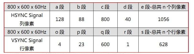 下面以800x600@60Hz分辨率威力詳細講解VGA時序: