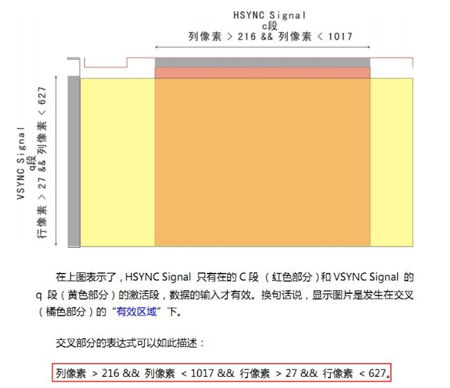 由VGA的行時序可知:沒一行都有一個負極性行同步脈沖(Sync a),是數據行的結束標志,同時也是下一行的開始標志。在同步脈沖之后為顯示后沿(Back porch b),在顯示時序段(Display interval c)顯示器為亮的過程,RGB數據驅動一行上的每一個像素點,從而顯示一行。在一行的最后為顯示前沿(Front porch d)。在顯示時間段(Display interval c)之外沒有圖像投射到屏幕是插入消隱信號。同步脈沖(Sync a)、顯示后沿(Back porch b)和顯示前沿(Front porch d)都是在行消隱間隔內(Horizontal Blanking Interval),當消隱有效時,RGB信號無效,屏幕不顯示數據。