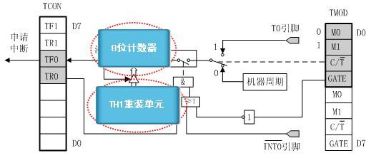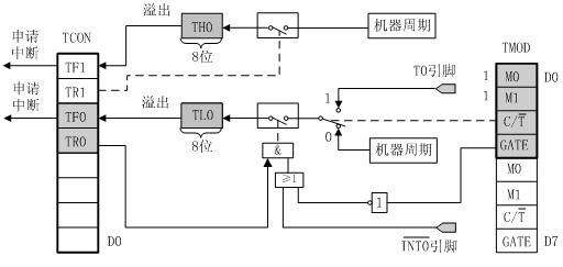 定時器/計數器的實質是加1計數器(16位),由高8位和低8位兩個寄存器組成。TMOD是定時器/計數器的工作方式寄存器,確定工作方式和功能;TCON是控制寄存器,控制T0、T1的啟動和停止及設置溢出標志。