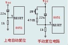 8051的復(fù)位方式可以是自動復(fù)位(VCC一上電時是通的,待穩(wěn)定后電容就斷開了直流電,RESET為低,此即典型的電阻電容式復(fù)位電路),也可以是手動復(fù)位(按鍵后電容充電,RESET為高,松開后,電容放電,直到RESET為低),見上圖。此外,RESET/Vpd還是一復(fù)用腳,Vcc掉電其間,此腳可接上備用電源,以保證單片機(jī)內(nèi)部RAM的數(shù)據(jù)不丟失。