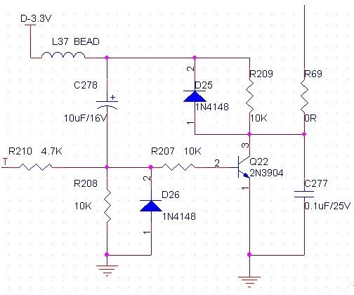 對于二極管的作用,是為了斷電后加速RESET腳放電,以免在快速開關(guān)機(jī)時前后操作相互影響,原理是斷電后RESET腳上電流從D25直接輸出到地,而不是流經(jīng)R209,因?yàn)槎䴓O管有壓降,所以起到加速放電的作用。