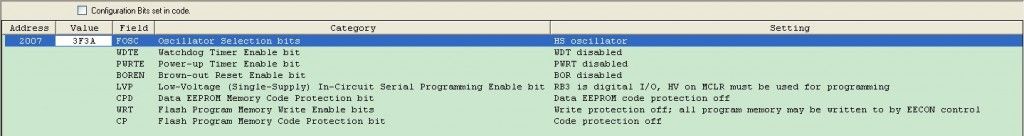 針對Configuration Bits;我在pic16f873a的設置如下: