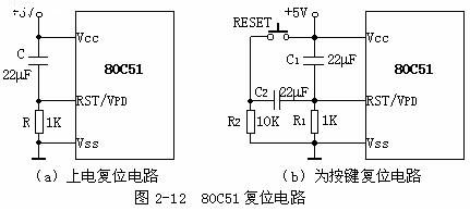 這種復位電路的工作原理是:通電時,電容兩端相當于是短路,于是RST管腳上為高電平,然后電源通過電阻對電容充電,RST端電壓慢慢下降,降到一定程序,即為低電平,單片機開始正常工作。