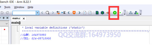 以華大MCU HC32F003的GPIO程序為例,編譯通過后點擊下面圖標進行下載與調試。