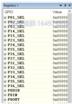 選中GPIO后會看到Registers x里的內容已經變成了GPIO相關的寄存器,如下圖所示: