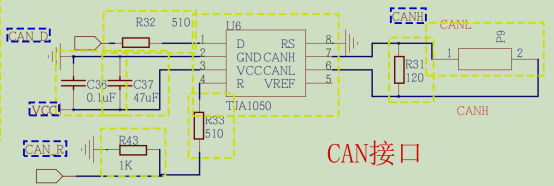 將CAN_D連接HK32F103VET6芯片的引腳PA12,CAN_R連接HK32F103VET6芯片的引腳PA11,CANL和CANH接外部CAN總線(即前文提到的CAN-L和CAN-H)。