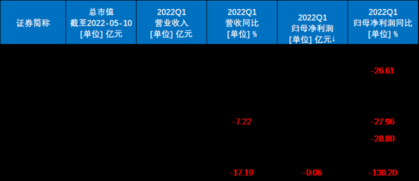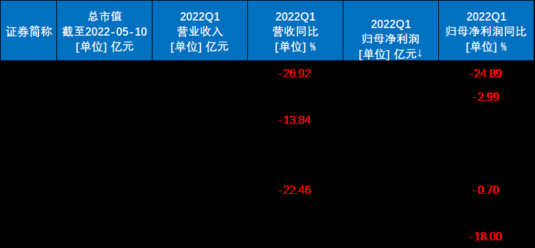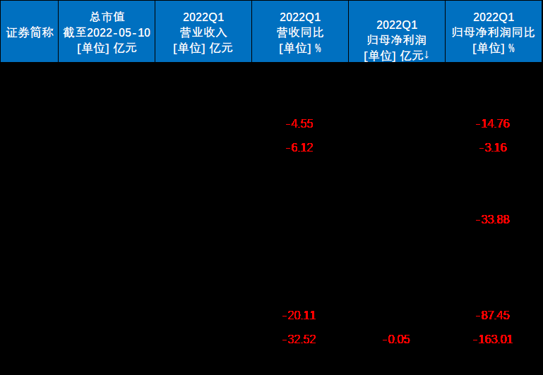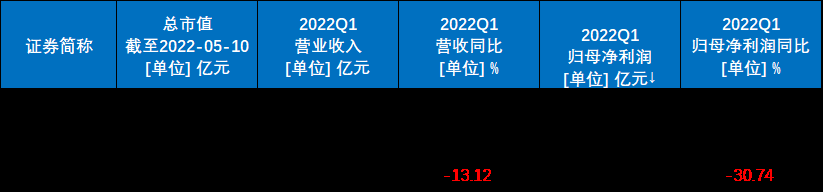 A股被動元器件公司2022Q1財報數據