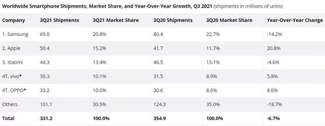 基于不薅羊毛都不好意思的心態, IDC數據顯示,受益于iPhone13銷量火爆,蘋果2021年第三季度全球手機出貨量重回第二名。
