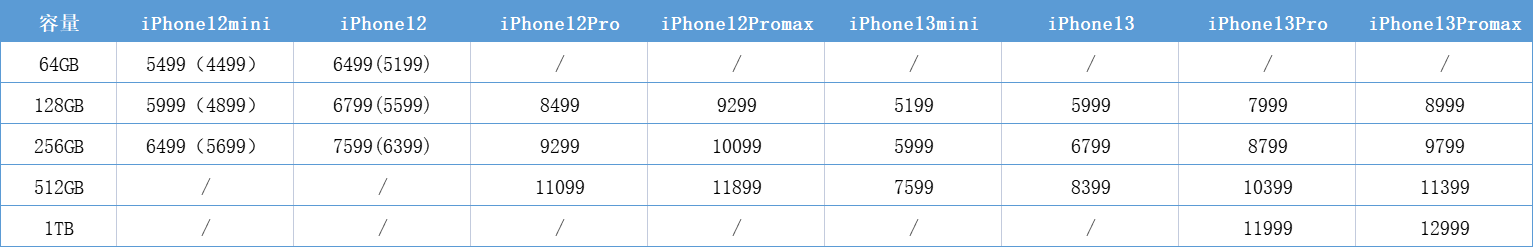 其次在“降價”方面,同等容量下,iPhone13系列比iPhone12系列價格低1000元左右。