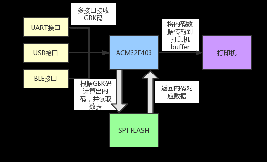 1)從UART、USB或BLE接口接收需要打印文字的GBK碼;