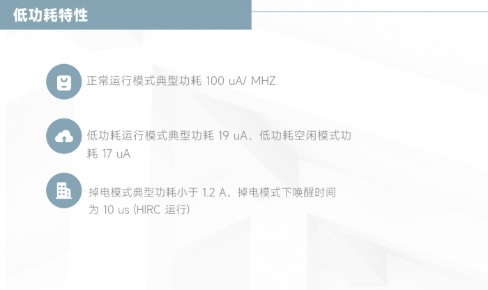 內建 64 KB Flash 內存、以及 4 KB SRAM,正常運行模式典型功耗可達 100 µA/MHz,休眠模式下 LCD 保持顯示功耗可低至 2 µA,ML54 系列操作頻率為 24 MHz,支持寬電壓工作范圍 1.8V 至 3.6V,工作溫度:- 40℃ 至 105℃。