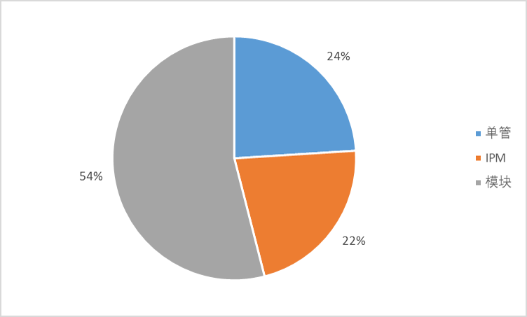 2020 年單管、 IPM、模塊市場規(guī)模占比為 24%、 22%、 54%。