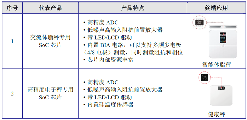 “公司醫(yī)療健康SoC芯片是基于高精度ADC的信號(hào)處理SoC技術(shù),包括紅外測(cè)溫信號(hào)處理芯片、智能健康衡器SoC芯片、人體健康參數(shù)測(cè)量專用SoC芯片等,廣泛應(yīng)用于紅外測(cè)溫槍、體脂秤、健康秤、血壓計(jì)、血氧計(jì)等各類醫(yī)療健康產(chǎn)品中?!?羅偉紹對(duì)芯八哥記者說(shuō)道。