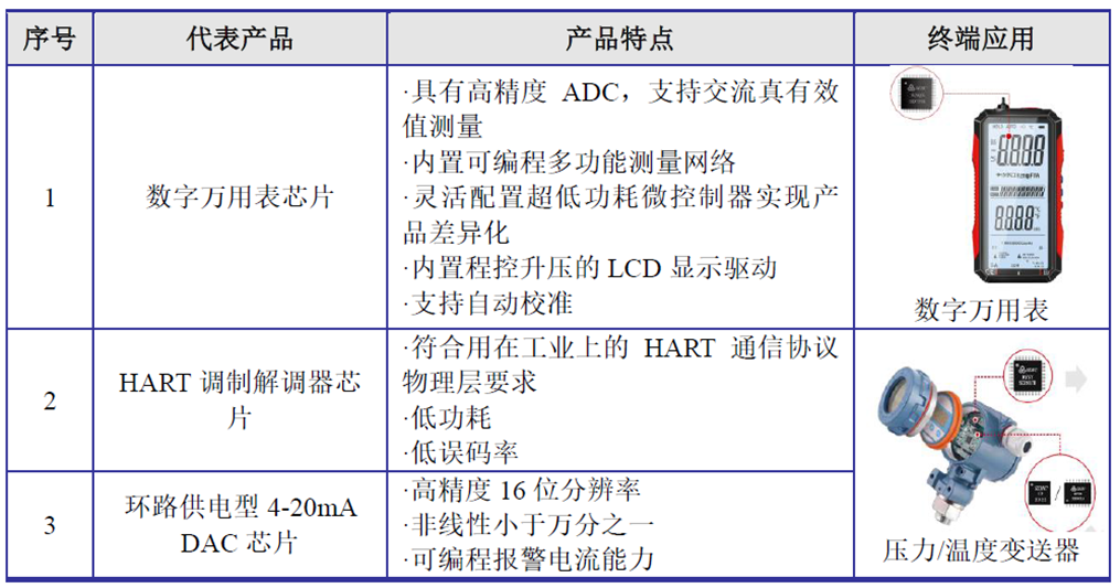 據(jù)了解,晶華微的工控儀表類芯片主要有數(shù)字萬(wàn)用表芯片、HART調(diào)制解調(diào)器芯片、環(huán)路供電型4-20mA DAC芯片、壓力/溫度傳感器信號(hào)調(diào)理及變送輸出專用芯片四大類,主要應(yīng)用在數(shù)字萬(wàn)用表、壓力變送器、溫度變送器、流量計(jì)等工業(yè)領(lǐng)域。
