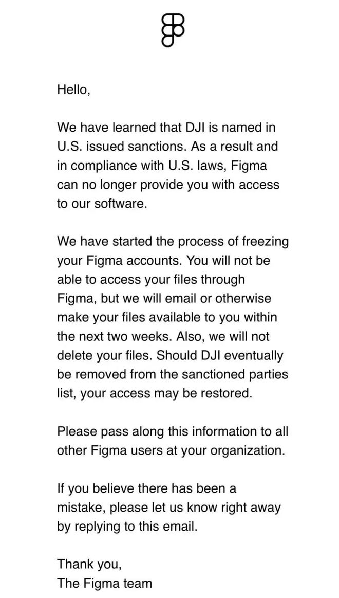 2022年,美國設(shè)計(jì)軟件企業(yè)Figma封禁大疆。
