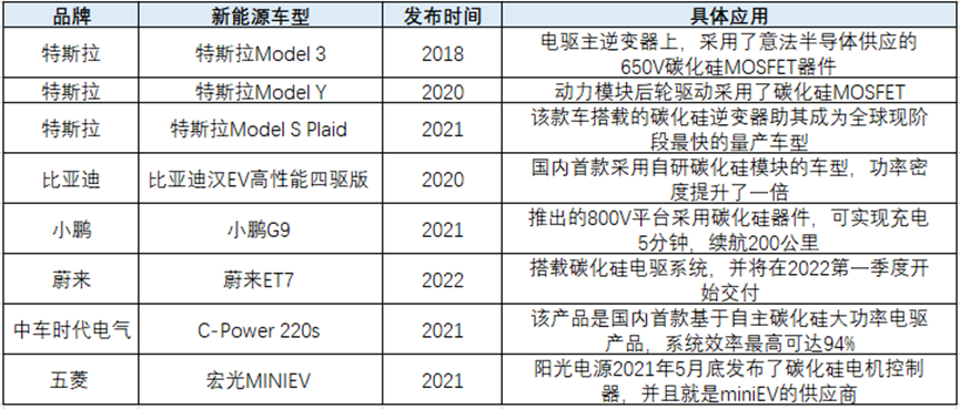 主要整車廠商碳化硅的具體應(yīng)用情況