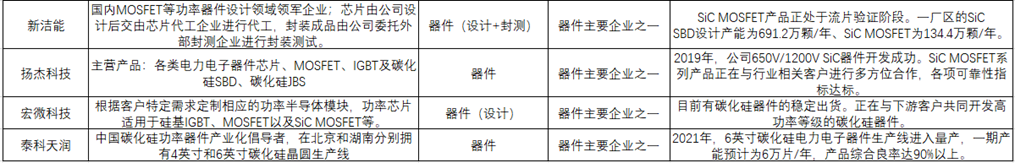 據(jù)三安光電介紹,公司部署的6英寸碳化硅晶體產(chǎn)線已經(jīng)在2021年6月開始正式投產(chǎn),產(chǎn)能為36萬片/年,生產(chǎn)的晶體厚度可對(duì)標(biāo)國際水平。此外,公司在2021年正式發(fā)布了純自研1200V碳化硅MOSFET平臺(tái)和器件,并且1200V和650V碳化硅二極管也已經(jīng)獲得了AEC-Q100車規(guī)級(jí)可靠性的認(rèn)證。