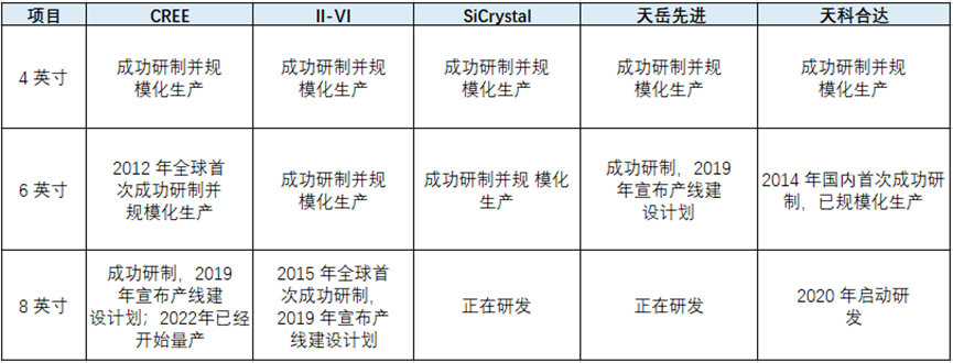 目前國內(nèi)外廠商碳化硅的技術(shù)發(fā)展情況