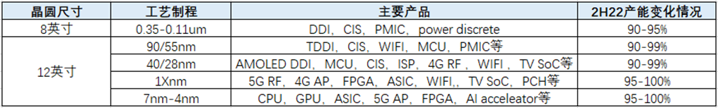 不同晶圓尺寸、不同工藝制程產(chǎn)品的產(chǎn)能利用率變化情況