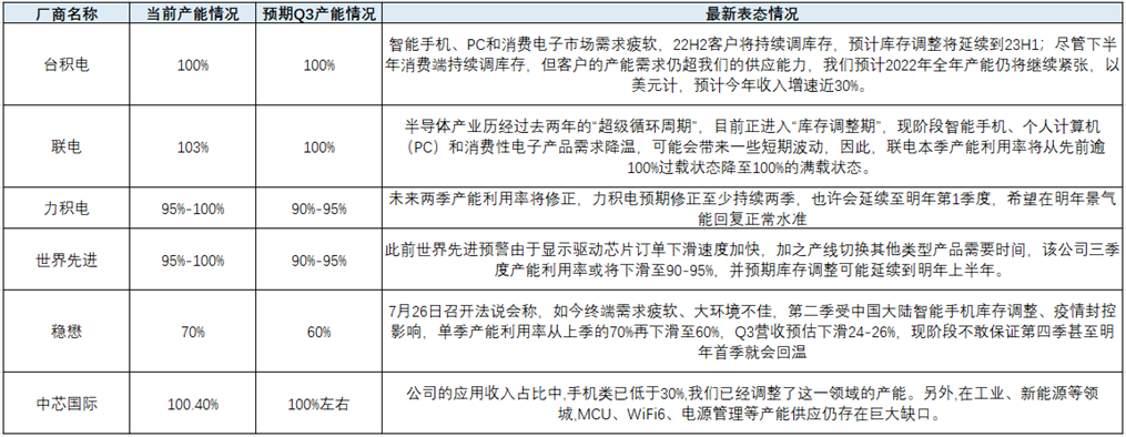全球主要晶圓廠業(yè)績說明會關(guān)于產(chǎn)能最新表態(tài)情況