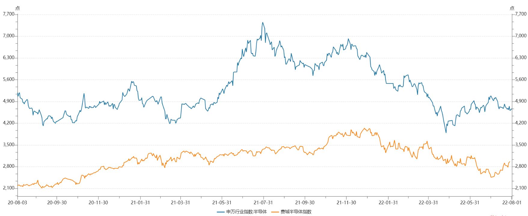 7月費城及申萬半導體指數