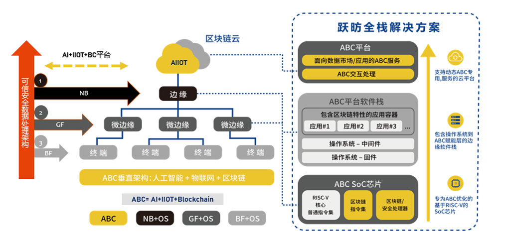 據了解,躍昉科技可以根據不同的應用場景,來選擇搭配使用以上三種芯片。另外,公司也有一個自創的叫做“ABC”的平臺,這個平臺主要通過區塊鏈技術,從而實現數據的安全可信上傳與可追溯。