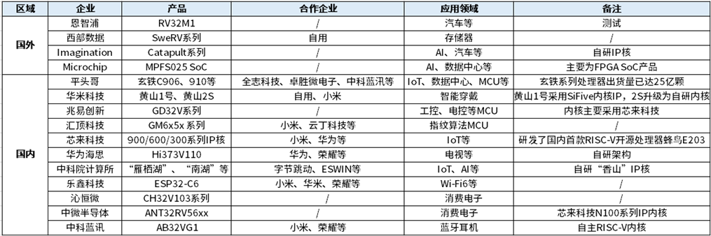 國內外RISC-V主要芯片企業及產品競爭格局