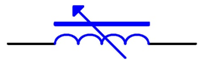 | 這是有磁芯而且電感量可在一定范圍內連續調整的電感器,電路符號中的箭頭表示電感量可調 |
