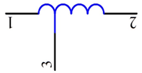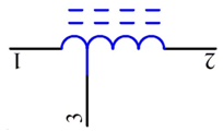 | 這一電路符號表示該電感器沒有磁芯或鐵芯.電感器中有一個抽頭,這種電感器有3根引腳 |
