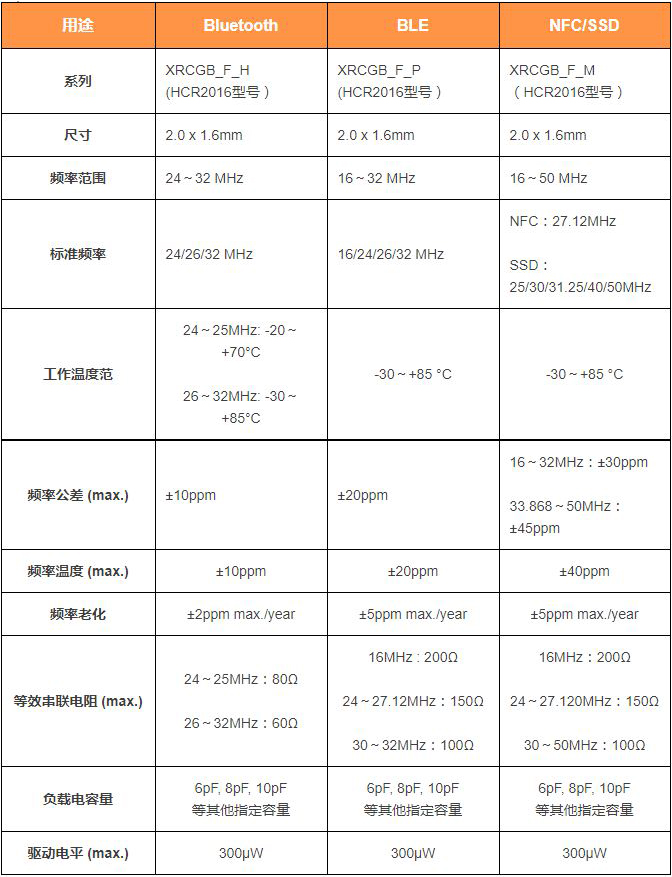近距離無線通信/存儲用晶體諧振器