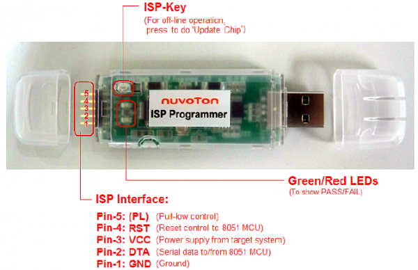 新唐科技全新的D版本單片機 ISP Programmer,兼具連線使用與離線使用的功能。連線使用時,透過USB介面連接到PC,直接對MCU進行燒錄,又因本身具有儲存的功能,也可預先下載程式碼以備離線時使用。而離線使用時,便將預先下載的程式碼,燒錄至MCU連線狀態適用于客戶的開發階段,工程師將編譯完成的程式碼直接透過ISP Programmer燒錄至MCU。而離線狀態則特別適用于生產線的燒錄與測試,藉著數個預載不同用途程式碼的ISP Programmer在生產線交替使用,可將測試與最后的燒錄整合于生產過程,大幅提高了客戶生產測試的彈性。