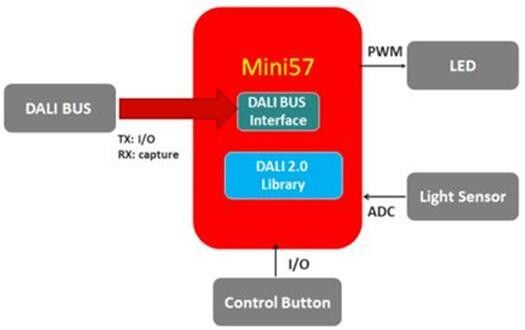 該方案主要實現DALI 2.0所需的多主機控制,此外,所需的軟硬件完全開源,是一個對于開發者極為友善的平臺,借由NuMicro Mini57系列的高運算能力,快速轉化資料以進行裝置控制,開發者亦可以實現復合型裝置應用。