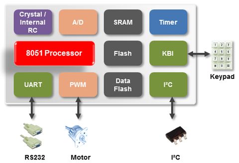 • 內核(Core) - 4T 8051微處理器 - 工作頻率可達 24 MHz - 工作電壓:2.4V to 5.5V - 工作溫度:-40℃ ~ 85℃ • 內存(memory) - 4 KB 應用程序 - 內嵌512B SRAM - 4 KB Data Flash - 支持在線系統編程ISP(In-System Programming) - 支持在線電路編ICP(In-Circuit Programming) | • 模數轉換器(ADC) - 提供4通道 - 10位分辨率 - 可達150 kSPS(每秒采樣率) • 通訊接口(connectivity) - 一組I2C(可達 400 kHz) - 一組UART • 時鐘控制(clock control) - 外部晶振4 to 24 MHz - 常溫,5V下±1% 22.1184 MHz 內RC晶振 - 內RC晶振可配置22.1184或11.0592 MHz |