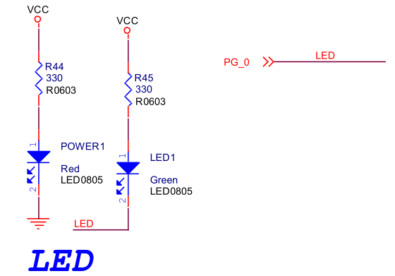 首先看一下LED1的連線情況,如圖6所示,說明只要能控制PG_0即可讓LED1動起來。