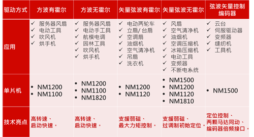 目前已量產(chǎn)系列為:內(nèi)建最高可支持高壓600伏特驅動器的NM1800 系列;內(nèi)嵌CAN 2.0B、兩組ADC、兩組OPAmp與矢量控制單元的高性能NM1500 系列;支持單電阻電流采樣的多功能型NM1200系列;和低管腳NM1100系列;NuMicro®馬達專用單片機適用于電動車、工業(yè)控制、風機驅動、電動工具、工業(yè)自動化、電子調速器、能源電力、馬達控制等應用領域。