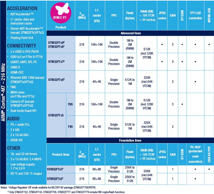 配備ARM® Cortex®-M7內核的STM32F7系列超高性能MCU