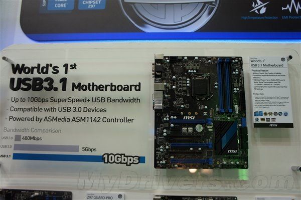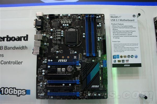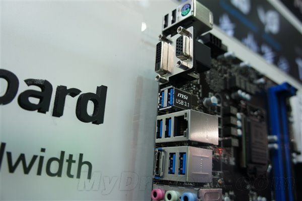 USB 3.1將把傳輸速度翻番提高到驚人的10Gbps,著實(shí)值得期待。微星也在臺(tái)北展示了世界上第一款USB 3.1主板,提供了兩個(gè)新的接口。