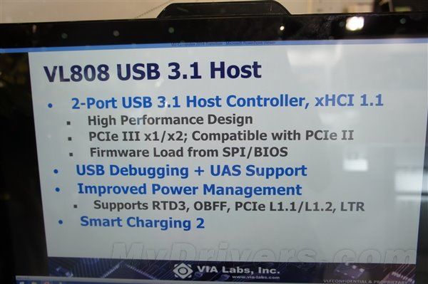 VL808支持兩個(gè)USB 3.1接口并支持xHCI規(guī)范、第二代智能充電,走的是PCI-E 3.0,性能無憂,還改進(jìn)了電源管理。