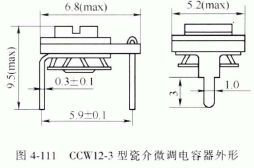 CCWI2-3 型瓷介微調電容器主要在電子設備中供頻率精確調整和溫度補償用。其外形如圖4-111 所示,主要特性參數見表4-173 。