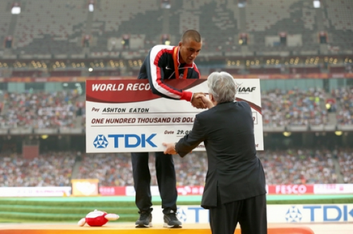 從1997年的雅典大會開始,當(dāng)男子項(xiàng)目中產(chǎn)生新世界記錄時, TDK就擁有了向該男子項(xiàng)目贈予10萬美元作為‘World Record’獎金的贊助商權(quán)利。過去,TDK曾6次為新世界紀(jì)錄贈予獎金,本次為第7次。