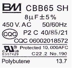 SH:電容器有自愈功能。全部的CBB電容都有自愈功能。 P0:不防爆。 B:B級產品,可以連續運行10000小時。 40/105/21:是產品測試參數,表示在負40度到105度之間連續做了21天運行測試,電容未出現問題。 CQC08002022577:通過CQC認證,08002022577是BM電容的CQC認證的證書編號。 3)安規類: