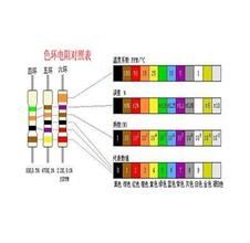 色環電阻用色環來表示電阻的阻值和誤差,普通的為四色環,高精密的用五色環表示,另外還有六色環表示的(此種產品只用于高科技產品且價格十分昂貴)。下表為色環電阻對照關系,其識別方法如下: