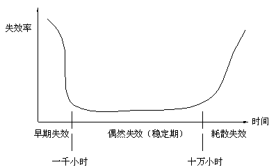 電子產品在生產制造時,因設計不合理、原材料或工藝措施方面的原因引起產品的質量問題有兩類,第一類是產品的性能參數不達標,生產的產品不符合使用要求;第二類是潛在的缺陷,這類缺陷不能用一般的測試手段發現,而需要在使用過程中逐漸地被暴露,如硅片表面污染、組織不穩定、焊接空洞、芯片和管殼熱阻匹配不良等等。一般這種缺陷需要在元器件工作于額定功率和正常工作溫度下運行一千個小時左右才能全部被激活(暴露)。顯然,對每只元器件測試一千個小時是不現實的,所以需要對其施加熱應力和偏壓,例如進行高溫功率應力試驗,來加速這類缺陷的提早暴露。也就是給電子產品施加熱的、電的、機械的或多種綜合的外部應力,模擬嚴酷工作環境,消除加工應力和殘余溶劑等物質,使潛伏故障提前出現,盡快使產品通過失效浴盆特性初期階段,進入高可*的穩定期。電子產品的失效曲線如圖1所示。