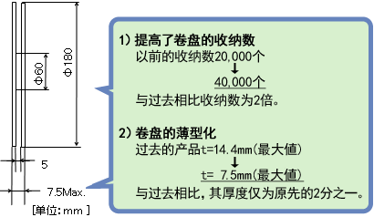W4P1壓紋帶與W8P2的紙帶相比,相同元件的包裝材料大小 (就表面積比率而言) 減少到1/4。這就在貼裝過程中極大地減少了包裝材料的浪費。 另外,通過減小包裝尺寸也相應的減少了運輸能源的消耗和二氧化碳的排放。