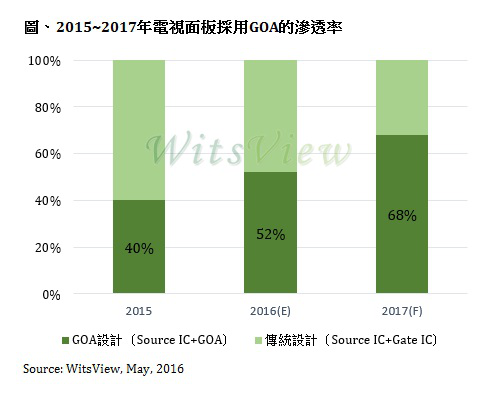 面板廠積極降低生產(chǎn)成本,2016 下半年電視面板采用 GOA 設(shè)計滲透率可逾 50%