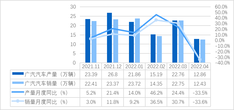 缺芯影響下,廣汽汽車4月產銷量顯著下滑